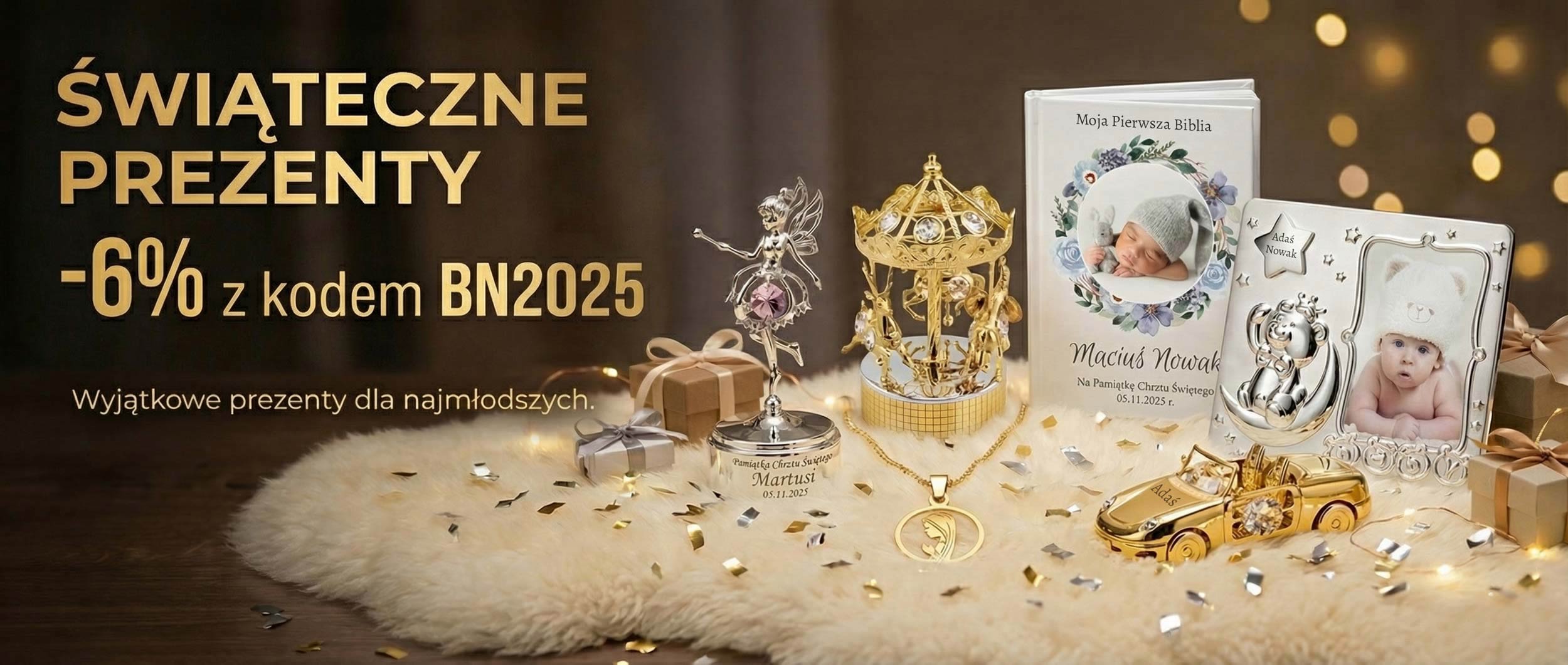 Chrzest Święty jest niezwykłym i niepowtarzalnym wydarzeniem o religijnym oraz rodzinnym charakterze. Nic dziwnego, że z tej okazji zwykło się wręczać dziecku symboliczne pamiątki. W sklepie internetowym Alechrzest.pl zgromadziliśmy całą gamę wyjątkowych i niepowtarzalnych upominków dla dziecka, które doskonale sprawdzą się w roli pamiątki Chrztu Świętego i będą stanowić oryginalny prezent. W ramach idealnego prezentu oferujemy efektowne pozytywki z grawerem, pamiątkowe skarbonki w zabawnych kształtach, klasyczne medaliki ze złota, małe puzderka na ząbek i pukiel włosów, albumy na dziecięce zdjęcia, szatki do Chrztu, obrazki na Chrzest Święty i wiele innych upominków, które doskonale spełnią rolę pamiątkowego upominku na Chrzciny od rodziny, a także od Matki Chrzestnej lub Ojca Chrzestnego.