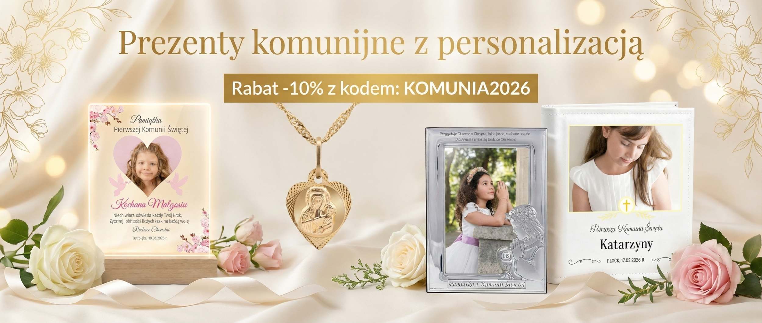 Oprócz prezentów na chrzest, w ofercie sklepu alechrzest.pl znajdą państwo duży wybór wyjątkowych prezentów z okazji I Komunii Świętej i Bierzmowania. Duży wybór pomysłów na prezent dla dziecka starszego sprawi, że z pewnością wybiorą państwo odpowiednie upominki dla dzieci. Życzenia na personalizowanych tabliczkach, wyjątkowy album, czy biblia ze zdjęciem świetnie się sprawdzą na bierzmowanie i chrzest. Prosty i intuicyjny edytor na stronie sprawi, że z łatwością stworzą państwo swój projekt - personalizowane prezenty dla dzieci to świetny pomysł na prezent.