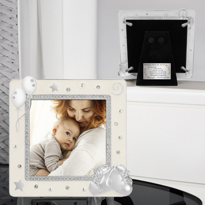 Ramka na zdjęcie niebieska z bucikami na chrzest Grawer