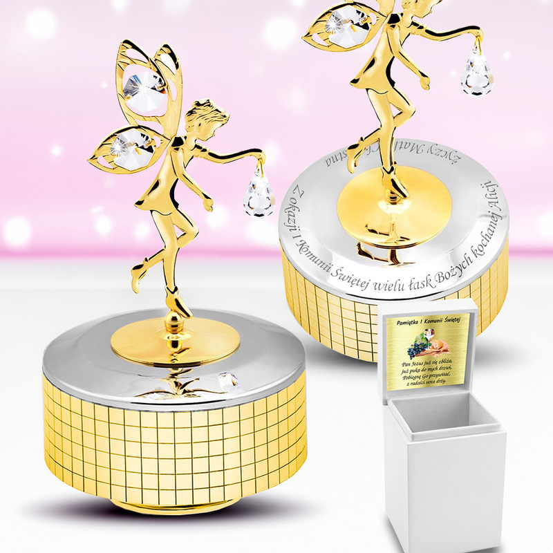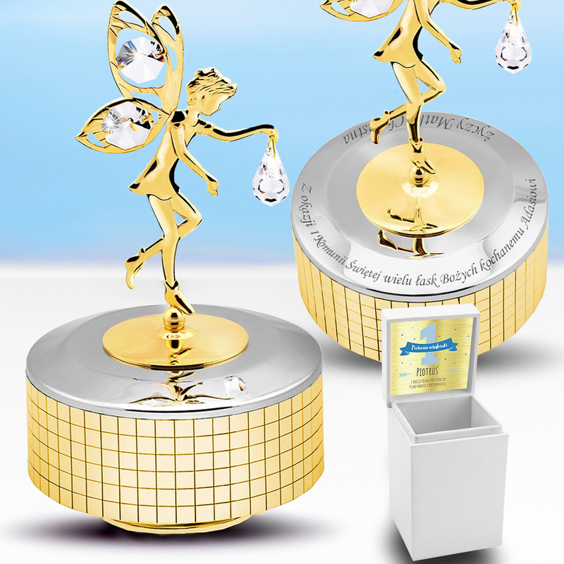 Pozytywka Elf z kryształami to wyjątkowy pomysł na prezent z okazji Chrztu, urodzin lub Dnia Dziecka. Jest to przedmiot pamiątkowy, ale też niezwykle dekoracyjny. Możliwość ozdobienia go indywidualnie zaprojektowanym grawerem powoduje, że staje się on unikatowy i jedyny w swoim rodzaju, a to czyni go perfekcyjnym wyborem na pamiątkę Chrztu Świętego.