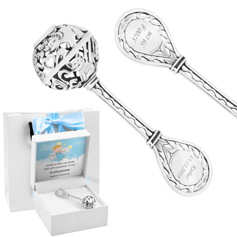 Grzechotka Srebrna 925 pamiątka na Chrzest GrawerCena: 269,00 zł / szt.