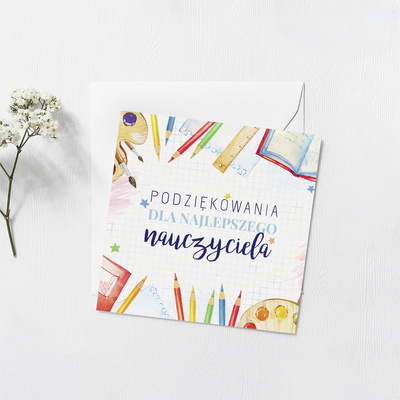 Kartka dla nauczyciela może być wspaniałym dodatkiem do prezentu głównego od całej klasy lub indywidualnym podziękowaniem za codzienną pracę nauczyciela. Dzięki swojemu zabawnemu stylowi, będzie odpowiednia na podarunek dla nauczycieli z klas podstawowych, przedszkola lub nauczycieli prowadzących zajęcia dodatkowe.