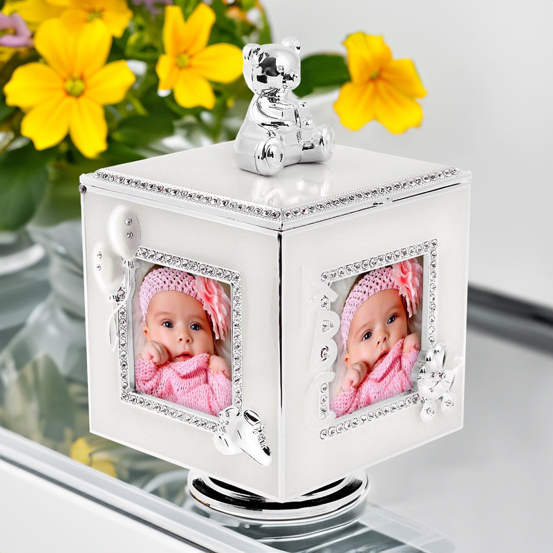 • Posrebrzana karuzela szkatułka z pozytywką i miejscem na zdjęcia