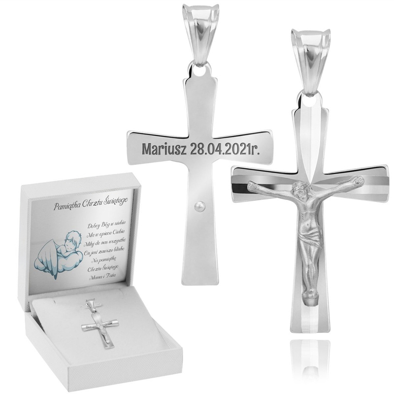 Krzyżyk srebrny pr.925 z Jezusem chrzest komunia bierzmowanie Grawer