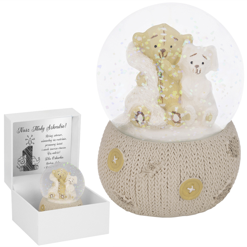 Miś w kuli śnieżnej / Pamiątka na chrzest / Prezent na roczekCena: 90,25 zł / szt.
