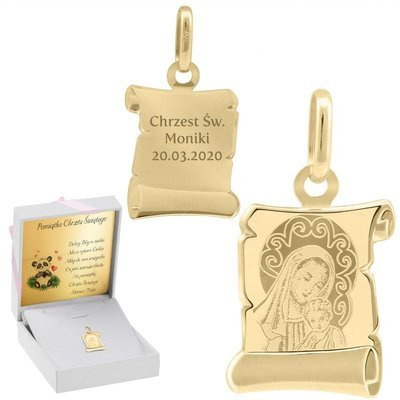 Na Chrzest lub Bierzmowanie: złoty medalik 585 Matka Boska z grawerem