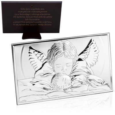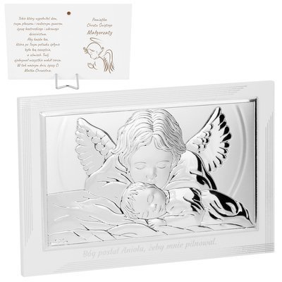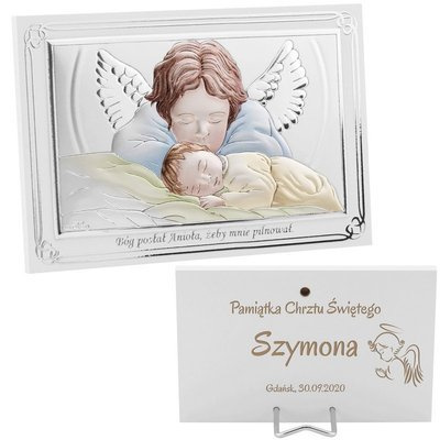 Obrazek Anioła Stróża z Dzieciątkiem i został zaprojektowany z myślą o podkreśleniu wyjątkowych chwil towarzyszących nam w ciągu życia. W znakomity sposób podkreślają one sakralny charakter uroczystości symbolicznie przedstawiony w obecności świętego opiekuna stróżującego nad nowo narodzonym dzieciątkiem.