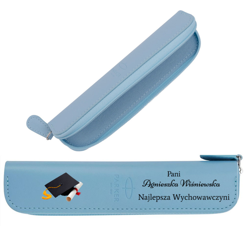 Eleganckie i praktyczne etui Parker w kolorze szarym, wykonane z wysokiej jakości skóry ekologicznej. Zamykane na zamek błyskawiczny, mieści jedno pióro lub długopis. Doskonałe jako prezent z personalizacją – nie tylko dla nauczyciela, ale również dla wychowawcy, pracownika, szefa czy bliskiej osoby.