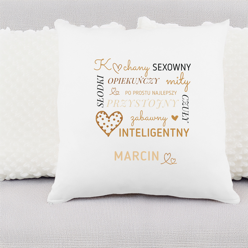 Pytanie: Jak można spersonalizować ten model? Odpowiedź: Personalizacja polega na dodaniu swoich imion do projektu. Nadruk personalizowany wykonywany jest na poszewce.
