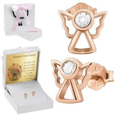 - Pozłacane różowym złotem kolczyki aniołki z białą cyrkonią pr. 925Cena: 39,00 zł / szt.