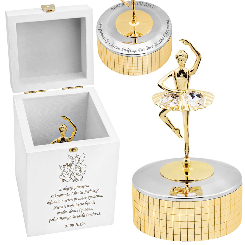 Pozytywka Balerina Carmani prezent na chrzest roczek z grawerem