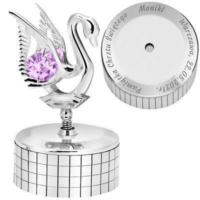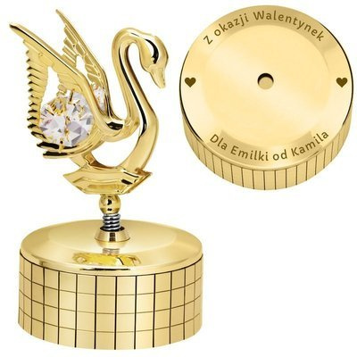 Prześliczna pozłacana pozytywka w kształcie łabędzia, ozdobiona jasnymi austriackimi kryształami wraz ze spersonalizowanym grawerunkiem.