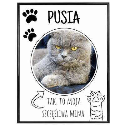 Prezent dla kociary kociarzy plakat pupila z jego zdjęciem/ Smutne życie bez kota/ 30x40 cm / szkło