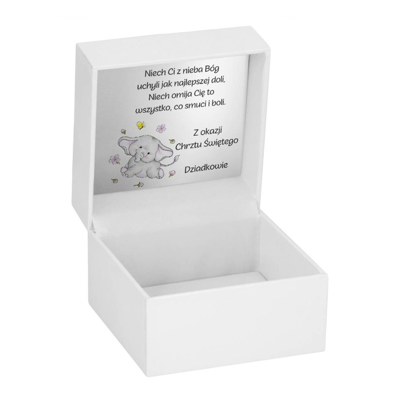 Przedstawiamy państwu piękne pudełeczko na prezent dla dziecka w białym kolorze. Solidne tworzywo, z którego wykonane jest pudełeczko sprawia, że będzie ono stanowić doskonałe zabezpieczenie znajdujących się w środku drogocennych przedmiotów.