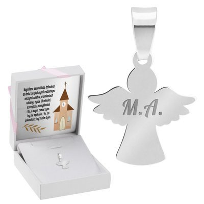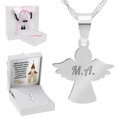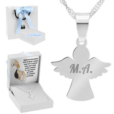 Śliczna, srebrna zawieszka z motywem anioła, jest piękną propozycją prezentu z okazji Chrztu Św., I Komunii Św. czy Roczku. Niesie ze sobą subtelny, ale religijny przekaz.