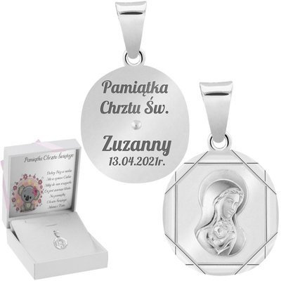 - Srebrny 925 medalik Matka Boska z Dzieciątkiem Grawer Chrzest KomuniaCena: 79,00 zł / szt.