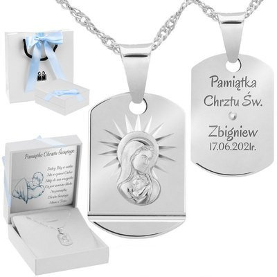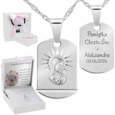 Srebrny medalik Matka Boska Madonna Pamiątka na Chrzest Grawer