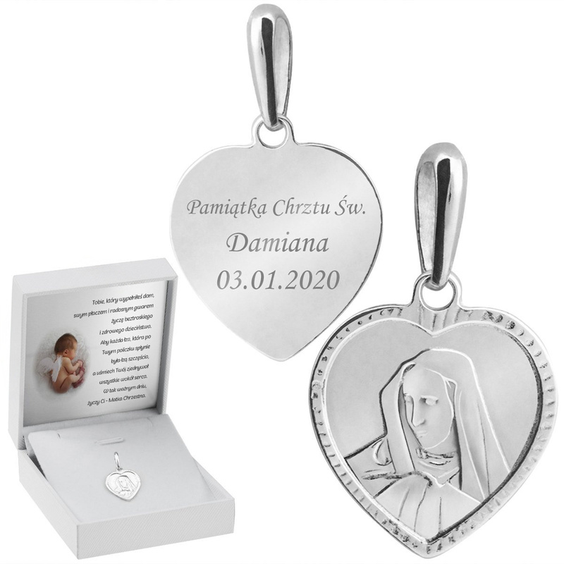 Srebrny medalik Serce pr. 925 Matka Boska Grawer