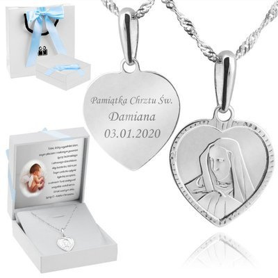 Srebrne medaliki w kształcie serca, w którego środku znajduje się wizerunek Matki Boskiej to doskonała pamiątka Chrztu Świętego, I Komunii Świętej czy też narodzin dziecka. Jest to nieodłączny element ważnych uroczystości.