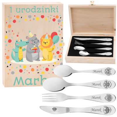 Dopełnieniem prezentu jest ozdobne pudełeczko na sztućce z personalizowanym nadrukiem. Pudełeczko zostało wykonane z wysokiej jakości drewna w naturalnym kolorze, a nadruk naniesiony metodą UV charakteryzuje się wysoką estetyką wykonania i trwałością, dzięki czemu pudełko będzie piękną pamiątką na długie lata. Dodatkowo, będzie to świetny, praktyczny przedmiot do przechowywania sztućców - solidne zamknięcie odpowiednio zabezpieczy sztućce zarówno w domu, jak i w czasie transportu.