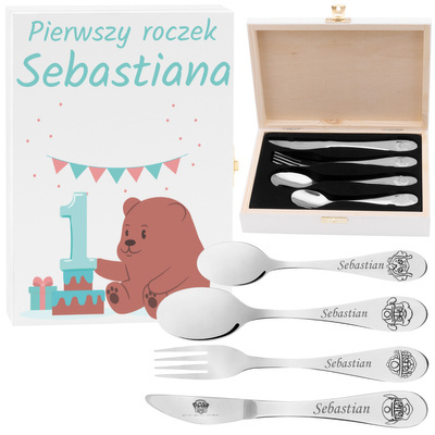 Proponujemy państwu wyjątkowe sztućce dla dziecka z motywem postaci z bajki Psi Patrol, bajki uwielbianej przez niemal każde dziecko. Sztućce zostały wykonane z solidnej stali nierdzewnej, dzięki czemu prezent posłuży rodzicom i dziecku przez wiele lat. Wysoka jakość materiałów zapewnia sztućcom wyjątkowy blask, dzięki czemu wyróżnią się one na tle pozostałych. Dodatkowo, na sztućcach wykonujemy personalizowany grawerunek, dzięki czemu prezent stanie się wyjątkowy i niepowtarzalny. Imię dziecka umieszczone na każdym elemencie zestawu z pewnością zachwyci rodziców i maluszka.
