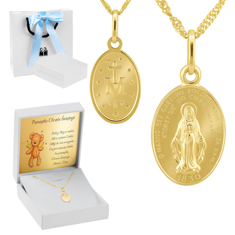 Medalik ten jest wspaniałym wyborem na prezent z okazji Chrztu Świętego lub Komunii Świętej. Podarowując go dziecku już na początku jego drogi, w kierunku wiary chrześcijańskiej sprawicie, że będzie szczególnie otoczone łaskami obiecanymi przez Maryję. Z pewnością doceni to w przyszłości.