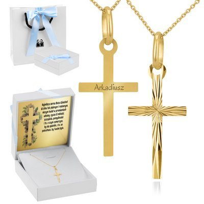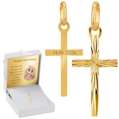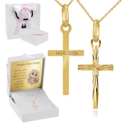 Złoty krzyżyk idealnie sprawdzi się jako prezent z okazji Chrztu Św. lub I Komunii Św. To obok medalików, drugi najczęściej wybierany przedmiot na tego typu okazje. Krzyżki podobnie jak medaliki, są tradycyjnymi symbolami wiary i wartości chrześcijańskich. Najczęściej noszą je mężczyźni i chłopcy, jednak nie ma takiego odgórnego ustalenia. Tak jak medaliki wręcza się chłopcom na Chrzest Św., tak też krzyżyk można podarować dziewczynce.