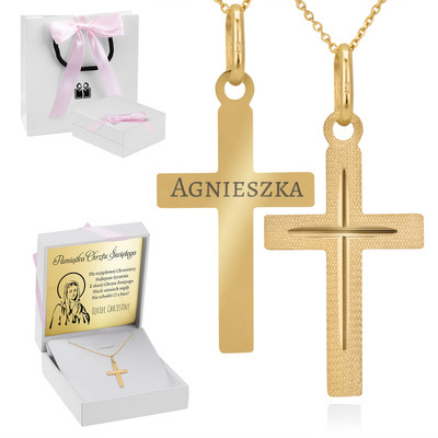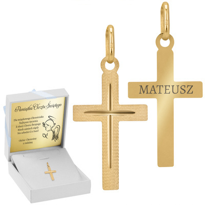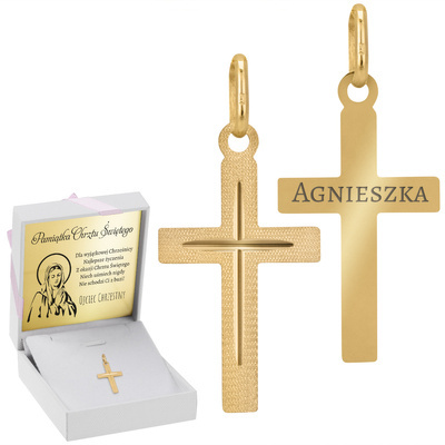 Złoty krzyżyk / pr. 585 / prezent na Chrzest Św., I Komunię Św., Bierzmowanie / z Grawerem