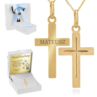 Elegancki, złoty krzyżyk to doskonały pomysł na prezent z okazji takich uroczystości religijnych jak Chrzest Św., I Komunia Św., Bierzmowanie. Złoty krzyżyk jest symbolem religijnym, który będzie towarzyszył młodemu człowiekowi przez całe życie. Z tego powodu warto zadbać, aby wręczany model był uniwersalny zarówno dla dziecka jak i osoby już dorosłej.