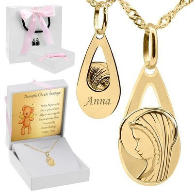 Proponujemy Państwu prześliczny medalik z wizerunkiem Matki Boskiej z indywidualnym grawerem. Medalik został wykonany najwyższej próby złota 585. Wykonany jest ręcznie z niesamowitą dbałością o detale. Posiada cechę Urzędu probierczego.